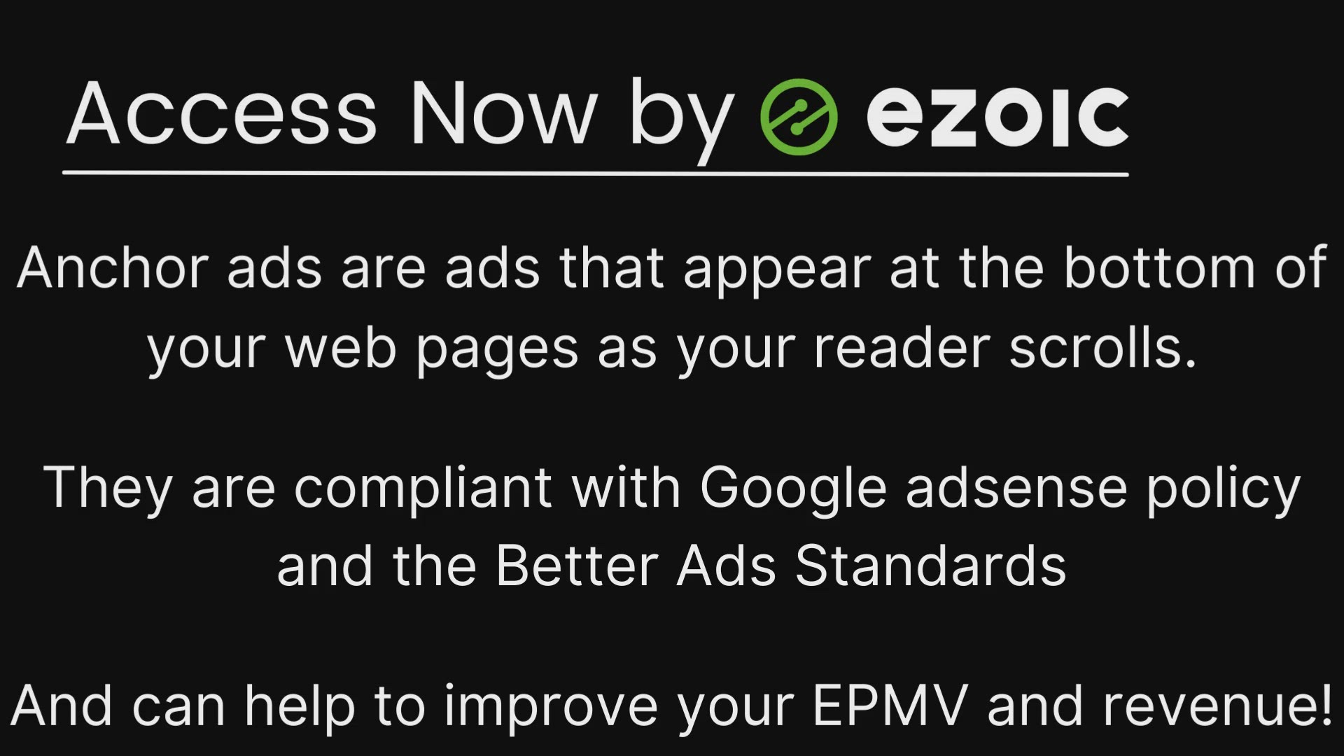 Anchor ads can add up to 70% uplift to your EPMV. This video talks you through how to switch the anchor ads on.